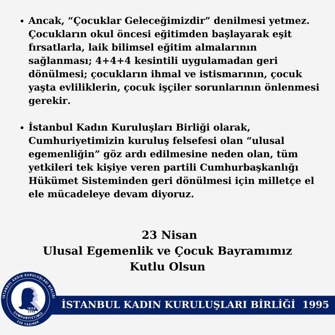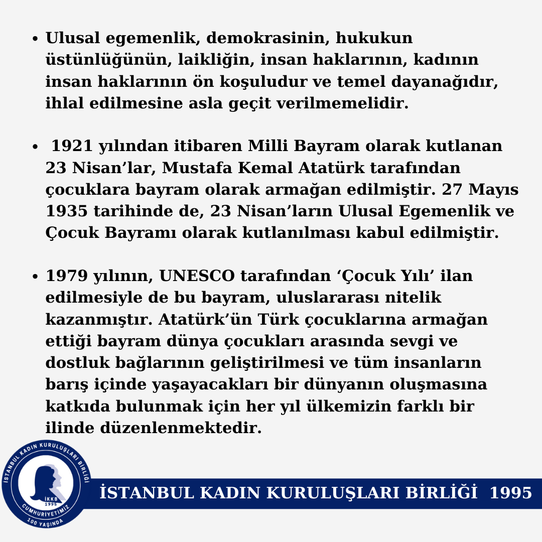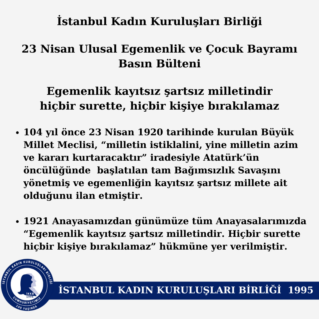 İstanbul Kadın Kuruluşları Birliği 23 Nisan Ulusal Egemenlik ve Çocuk Bayramı – Basın Bülteni