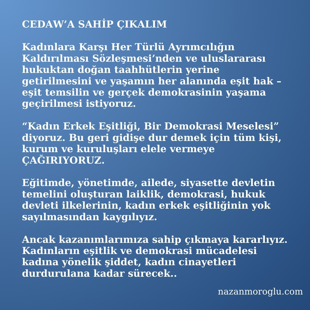 KAZANIMLARIMIZA VE CEDAW’A SAHİP ÇIKALIM!