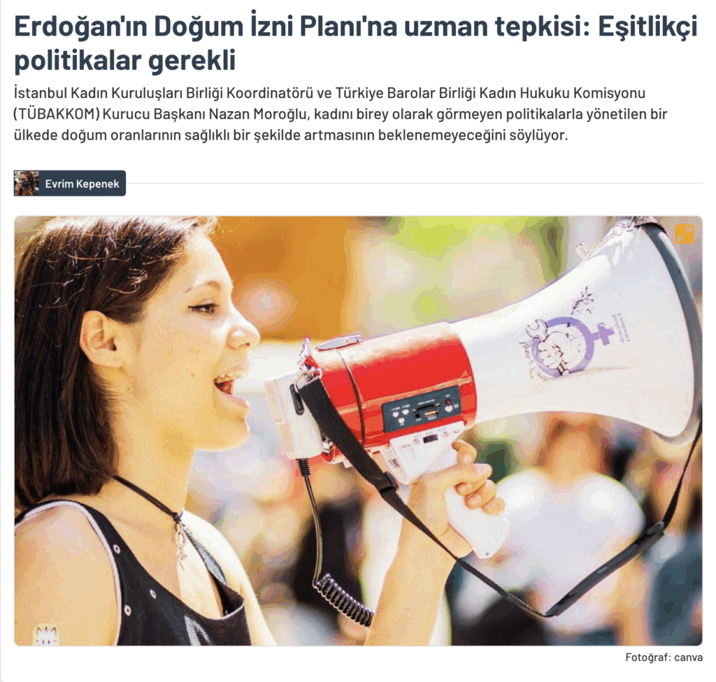 Ana Sayfa Ana sayfa Doğum izninde Eşitlikçi Politikalar Gerekli, Nazan Moroğlu, Bianet, 22 Haziran 2024 Ana sayfaBasınMakalelerKadın Hukuku Doğum izninde Eşitlikçi Politikalar Gerekli, Nazan Moroğlu, Bianet, 22 Haziran 2024 Yazar: Nazan Moroğlu - 22/06/2024 95 Yazı Linki: https://bianet.org/haber/erdogan-in-dogum-izni-plani-na-uzman-tepkisi-esitlikci-politikalar-gerekli-296886 İlgili HaberlerYazarın Diğer İçerikleri Laikliğe İlk Adımın 98. Yıl Dönümü Yaşlı Hakları – Yaşlılık Hukuku Gerçek Eşitlik Ancak Mücadeleyle Kazanılır Medeni Kanun 100 Yaşında Basın Açıklaması Eşitlik Sadece Kanunda!