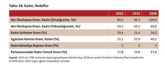 - Kalkınma Planında 2028 yılı için belirlenen hedefe göre;
