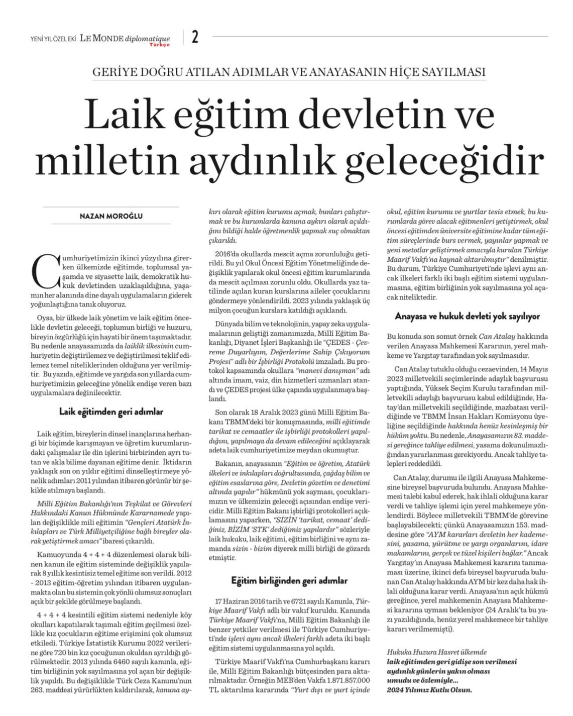 Cumhuriyetimizin ikinci yüzyılına girerken ülkemizde eğitimde, toplumsal yaşamda ve siyasette laik, demokratik hukuk devletinden uzaklaşıldığına, yaşamın her alanında dine dayalı uygulamaların giderek yoğunlaştığına tanık oluyoruz.